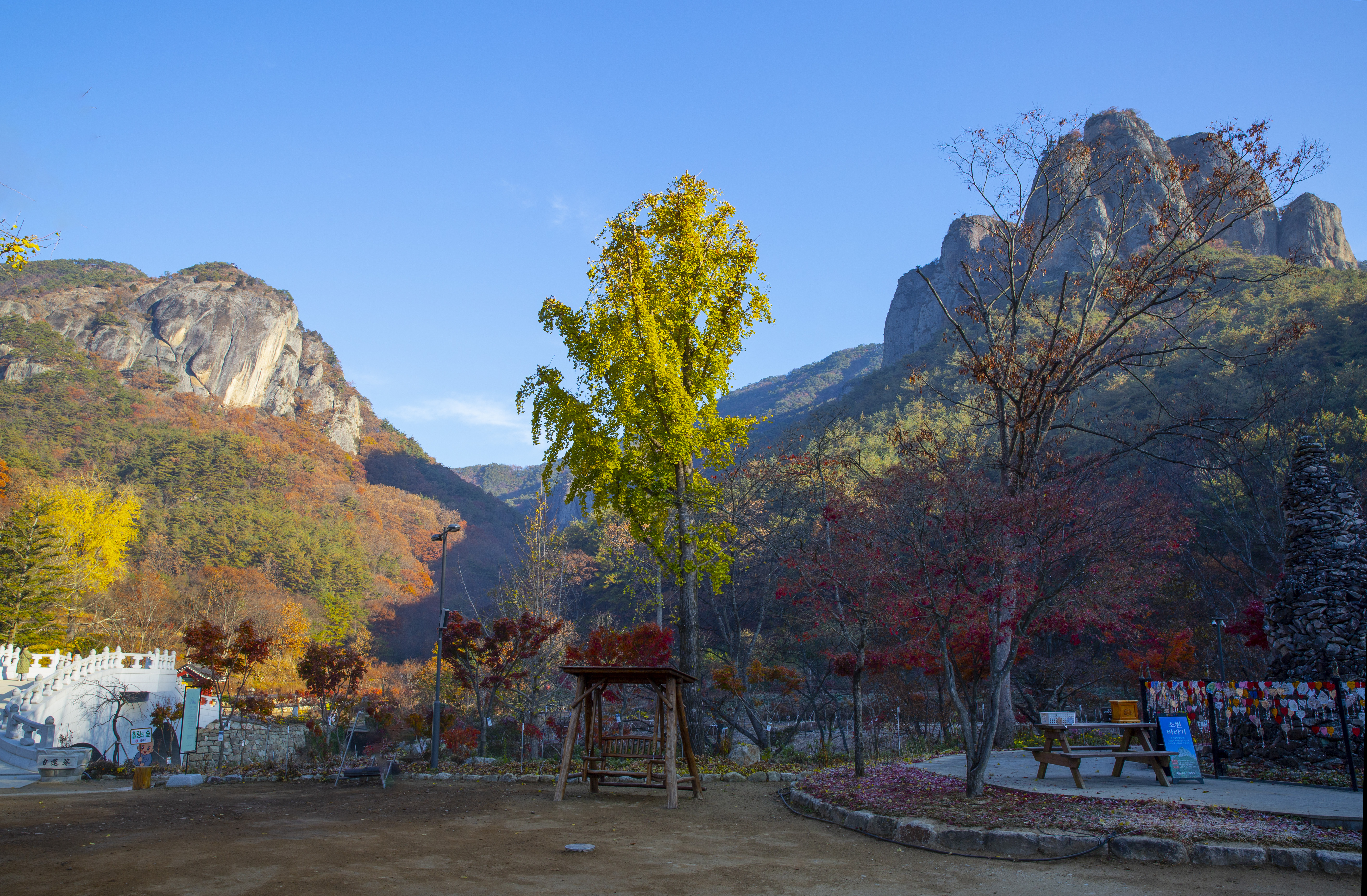 오른쪽 기암이 보이는 대전사 경내