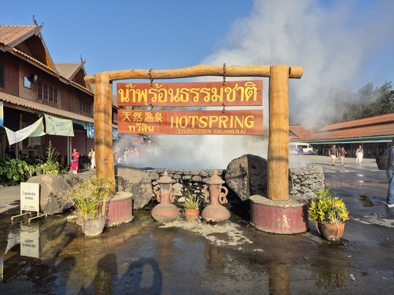 가자마자 푸라마치앙마이 호텔 쿨쿨 후 2026. 2.2 7시에 4시간 정도 가는 치앙라이로 달려 갔다. 1시간 30분쯤 가니 치앙센에 도착 메카찬 온천 족욕 체험을 했다.